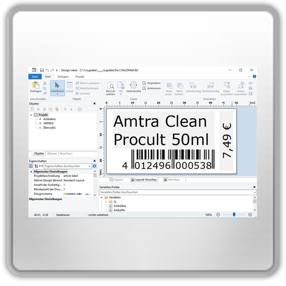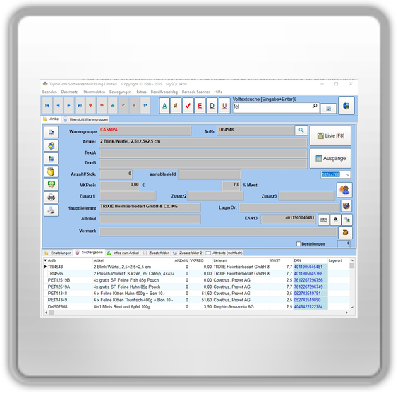 Der Etikettendruck inkl. Barcode für Artikel ist ebenfalls möglich.